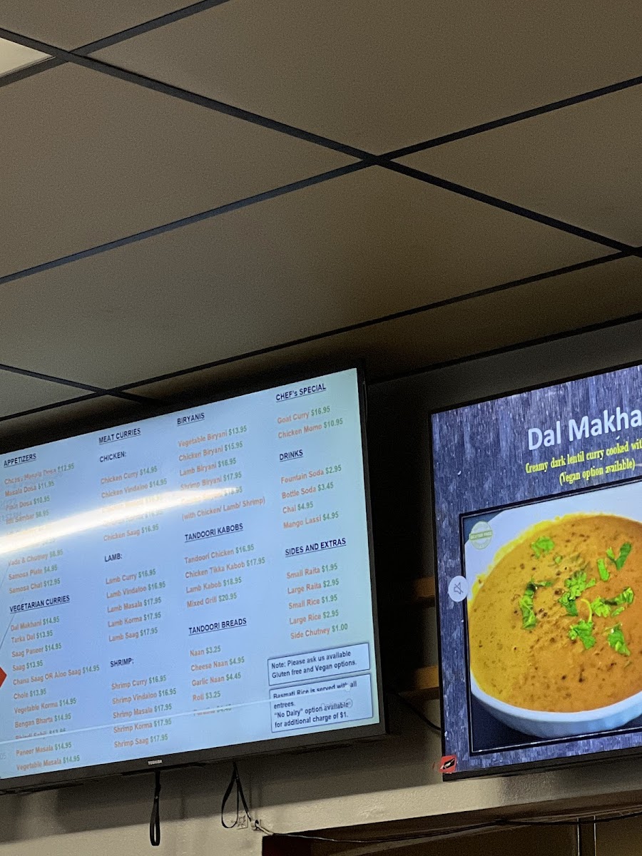 A creamy blend of chopped spinach and various spices. Comes with a side order of basmati rice.